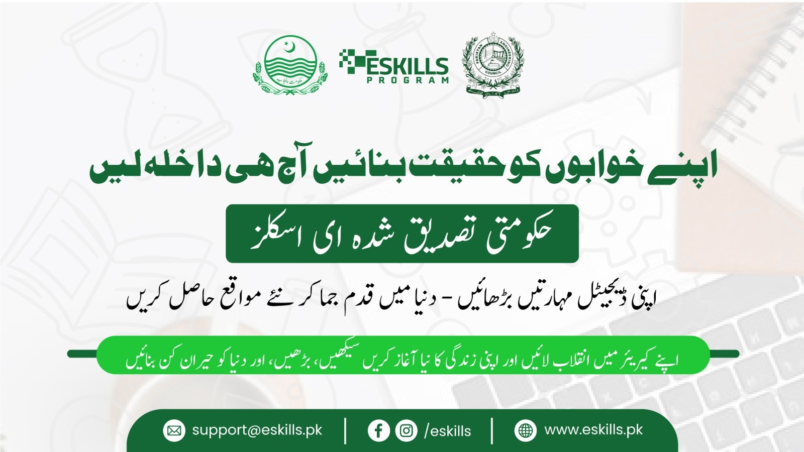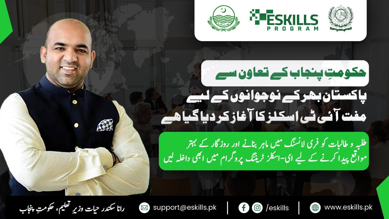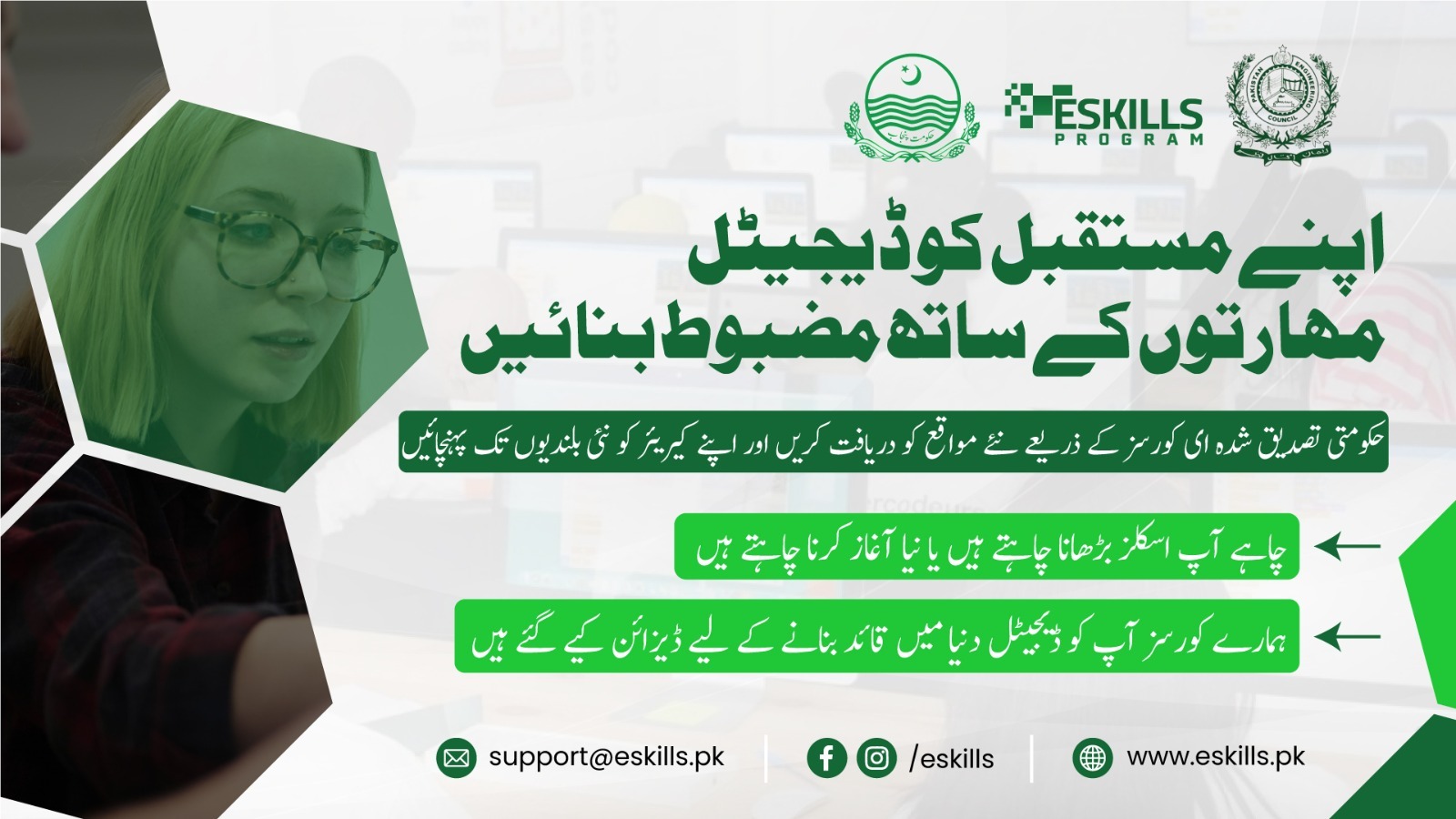 ہمیں ای سکلز ٹریننگ پروگرام کے باضابطہ آغاز کا اعلان کرتے ہوئے فخر ہے۔ یہ پروگرام پنجاب حکومت کی قیادت میں متعارف کرایا گیا ہے تاکہ جدید اور مارکیٹ کے تقاضوں کے مطابق تعلیم تک رسائی کو ممکن بنایا جا سکے۔