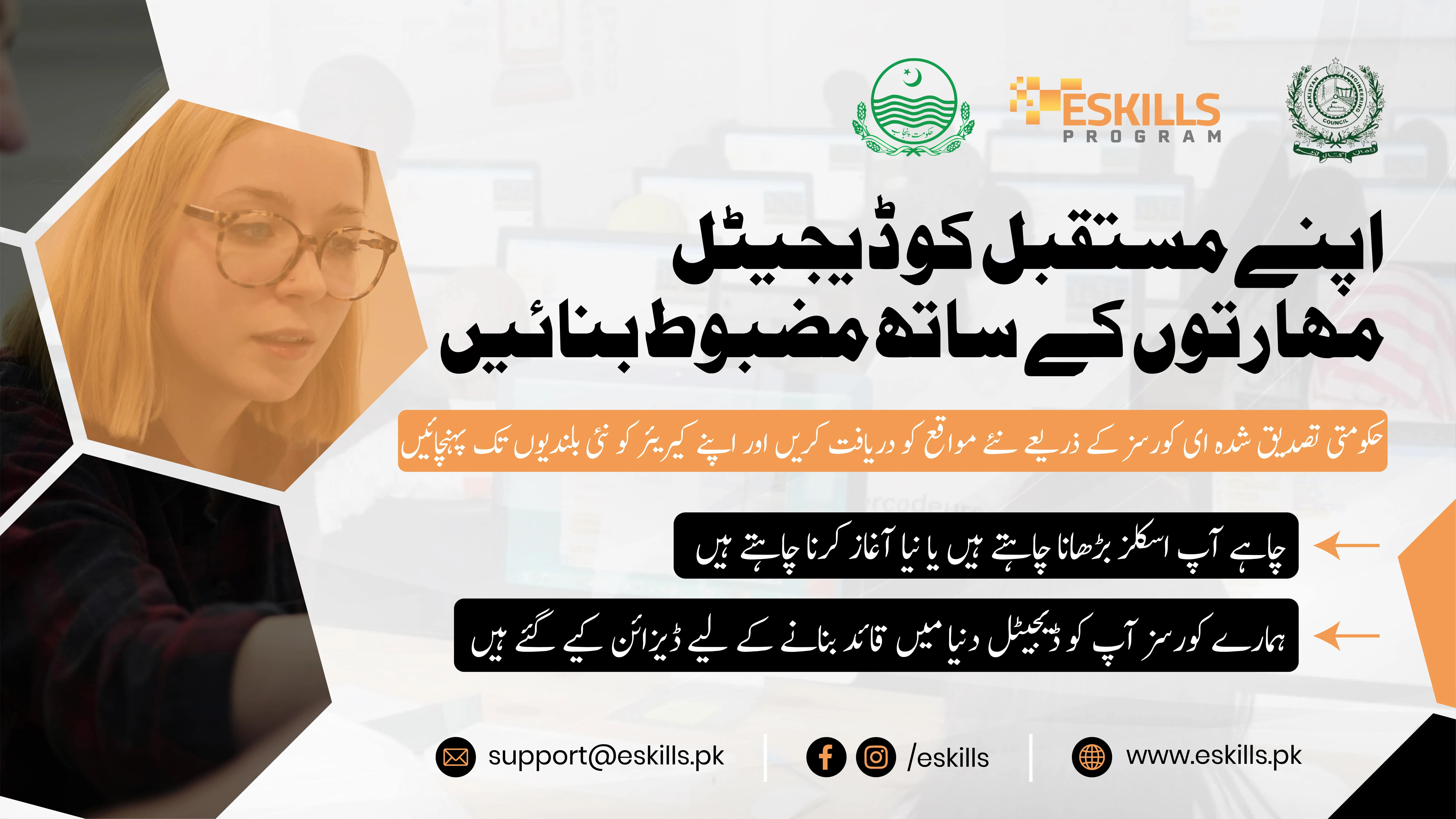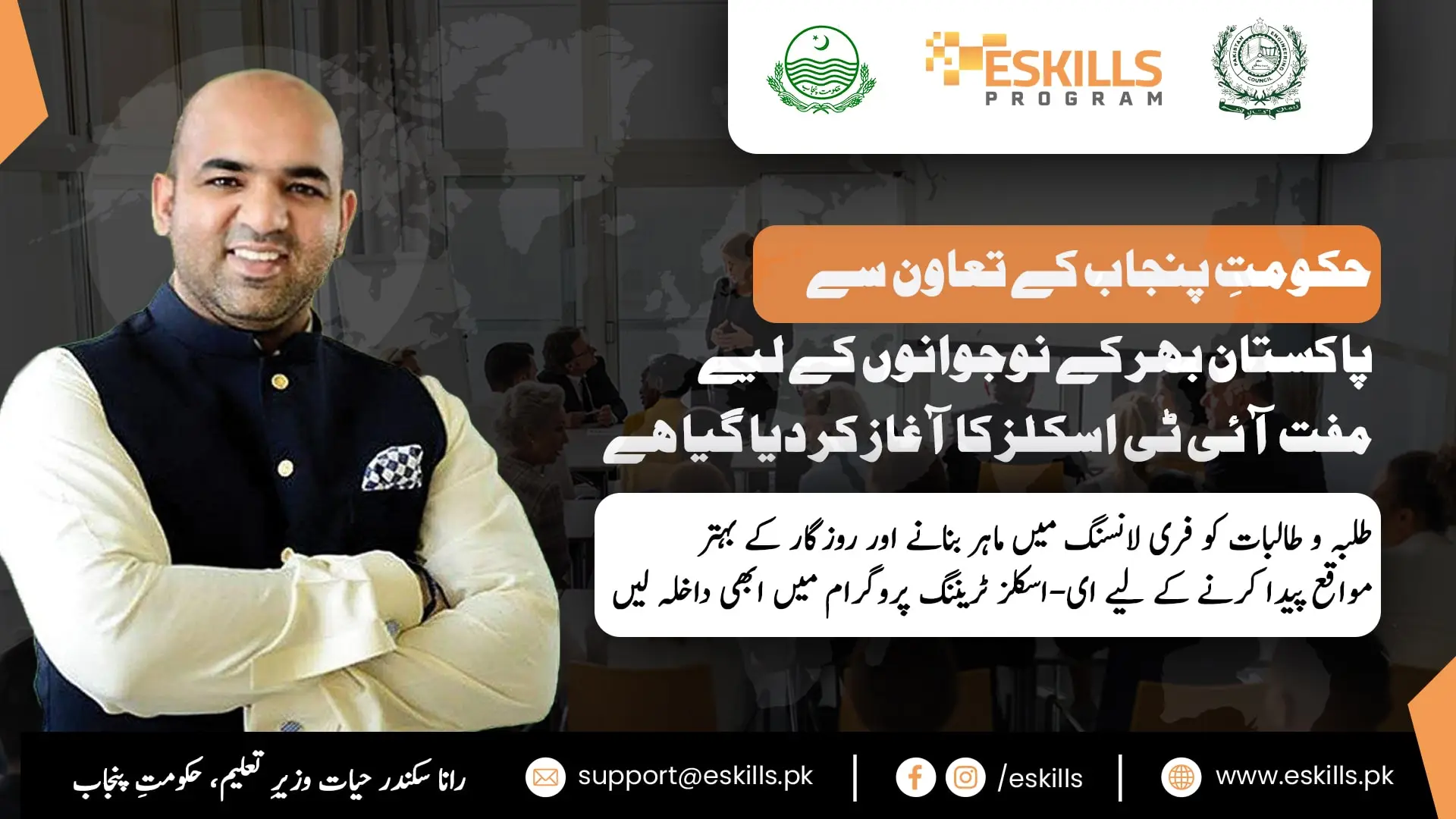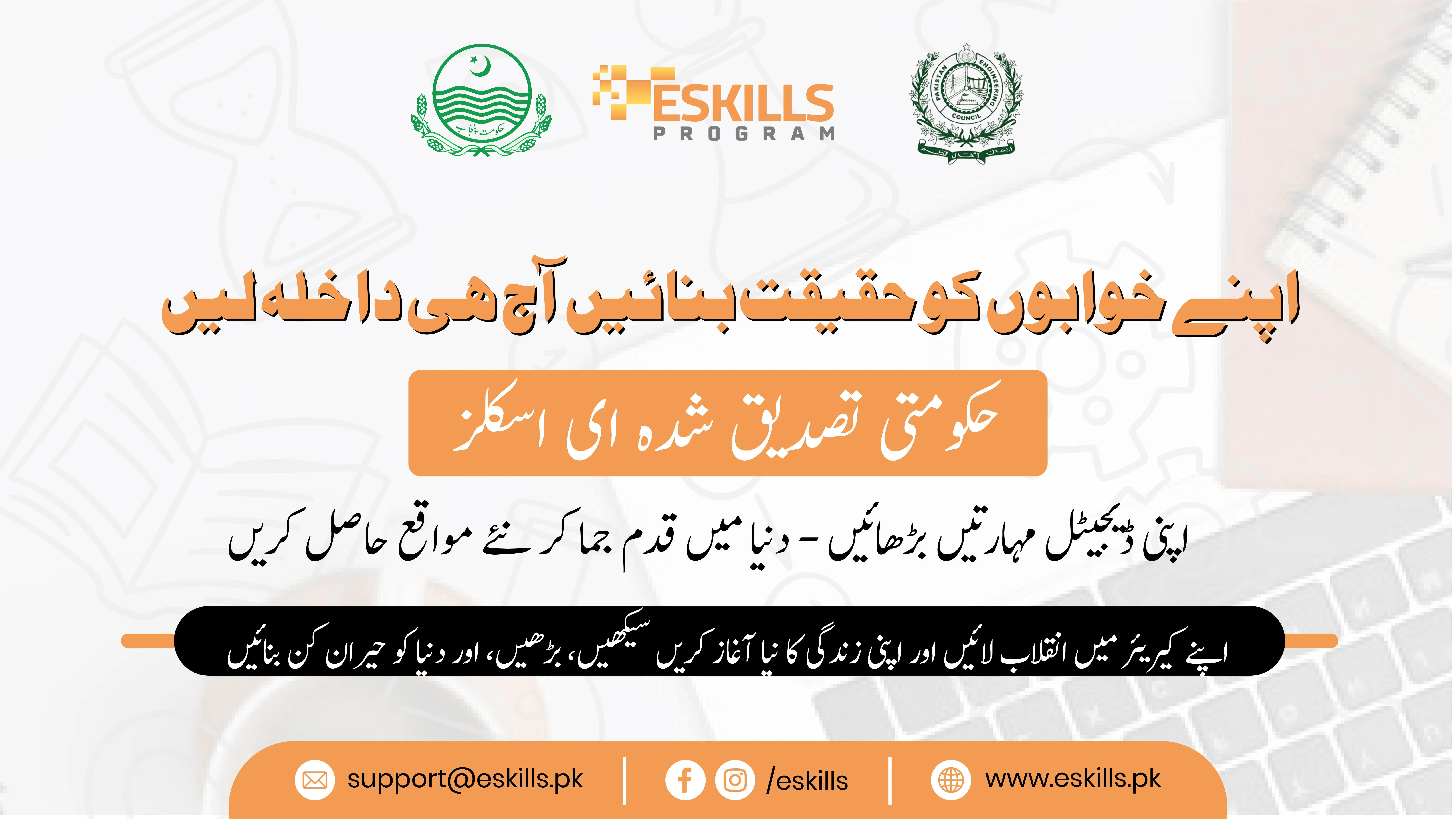 We are proud to announce the official launch of the Eskills Training Program, a groundbreaking initiative introduced under the visionary leadership of the Punjab Government. This transformative program offers: